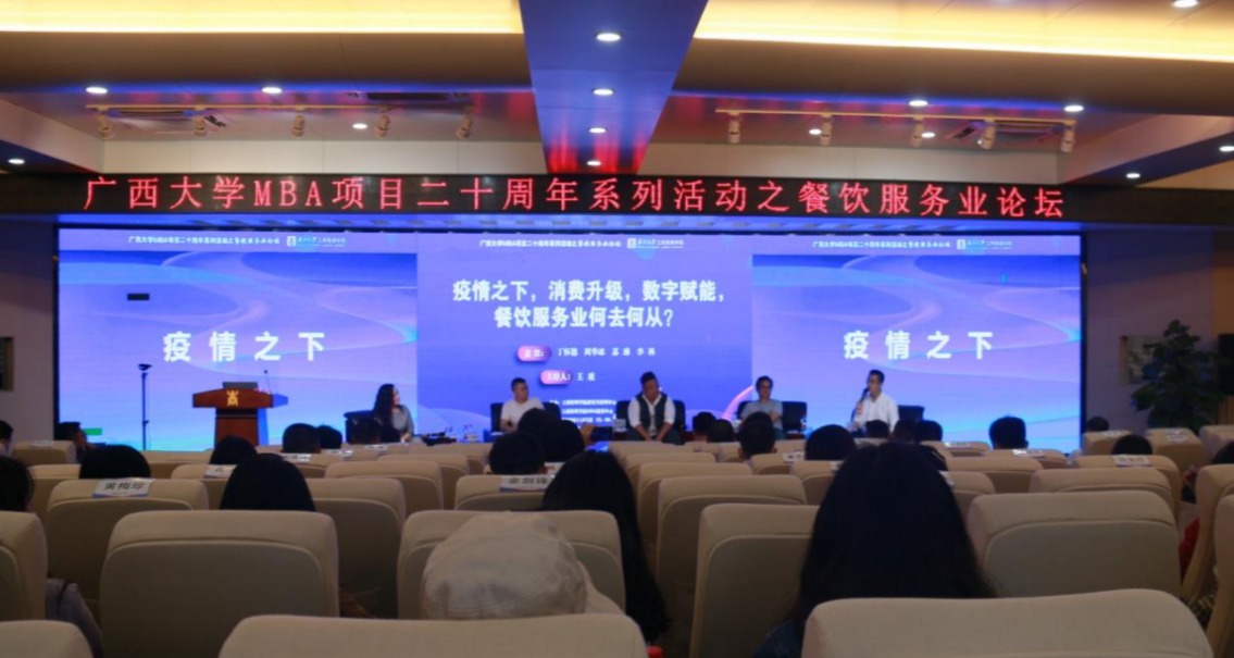院长朱帮助,研究生管理中心副主任、MBA教育中心主任叶映,新葡萄8883国际官网MBA校友会会长梁华秀,中国MBA华南峰会副理事长、新葡萄8883国际官网MBA校友会秘书长李翔,酒小二联合创始人丁怀德,“华华火锅”、“渝悦双椒头”、“五条友烧烤”等广西知名餐饮品牌创始人周华冰,广西泡泡吖食品创始人苏琳,广西维多利餐饮、兆基伟业地产营销机构创始人李科,天龙湾酒店集团副总裁张济强以及部分MBA、SMBA校友出席论坛。论坛由新葡萄官网研究生导师王玻副教授主持。因疫情防控需要,有近三百名2022级MBA及其他专业学员与校友通过线上方式参与此次论坛。