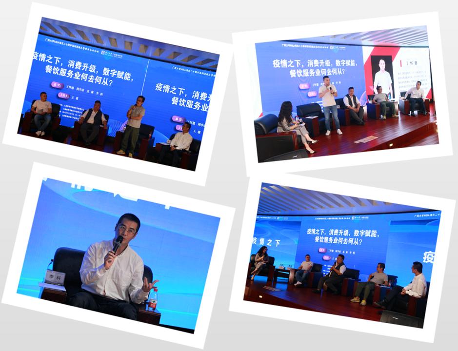 在主题讨论环节,四位嘉宾分别围绕疫情下的餐饮企业如何适者生存、消费升级带来消费者需求和行为的变化,以及在互联网、信息技术、数字技术等新技术的助攻下餐饮服务业如何实现创新发展等大家较为关注的话题展开深入的交流与探讨。
